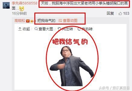 有网友评论称,看到高晓松的这句话,脑海中浮现的是他小拳头捶胡歌胸口的画面。而令网友想不到的是,高晓松竟然回复了这条评论,并自黑。引来不少网友围观。