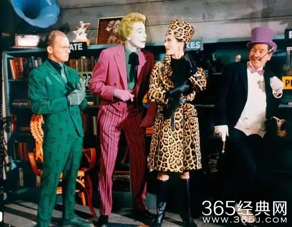 当然了,在蝙蝠侠自1939年诞生以来的七十多年间,他也不是一直都走暗黑风。在1960年代蝙蝠侠的漫画销量经历过一次急剧下滑之后,1966年开始首播的蝙蝠侠电视剧让该系列东山再起,电视剧中的蝙蝠侠画风大变,极尽夸张滑稽之势。