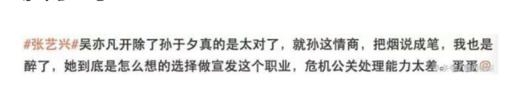 结果人家孙于夕作为张艺兴的宣传团队居然不出来澄清,还发了一条莫名其妙的微博....这是在干嘛...反讽导演吗?现在不是应该向各种吃瓜路人解释这件事的始末吗?