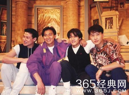 张学友,刘德华,郭富城,黎明四大天王的罕见合影。当时也很流行小白鞋的样子,天王还是天王,气质就出来了。