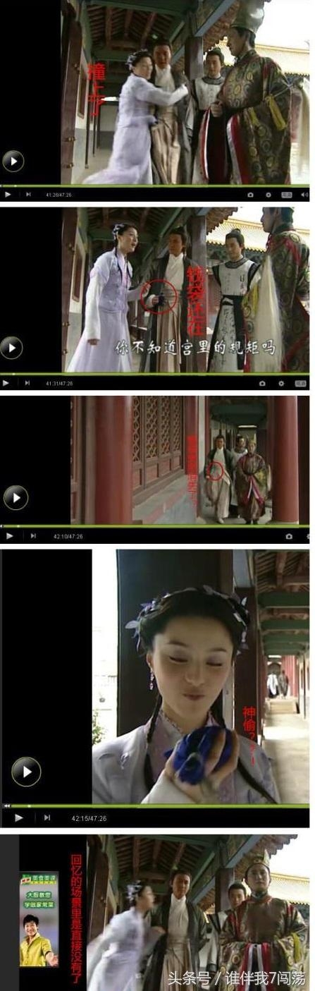 《少年包青天2》中范冰冰饰演的小蜻蜓撞了陆毅饰演的包拯后钱袋还在,她走后镜头一转钱袋就没了,出现在了她的手上……真是当观众眼瞎啊