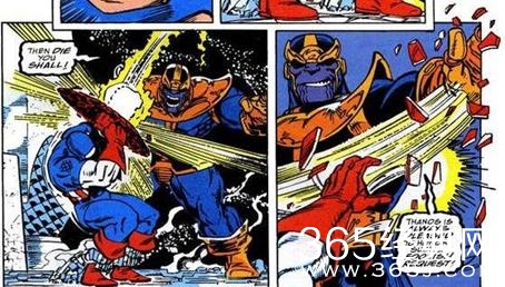 灭霸是漫威里的超级大反派,在《银河护卫队》《复仇者联盟》中都有出场。漫画中,戴着无限手套的灭霸手一挥,然后队长的盾就碎了一地。