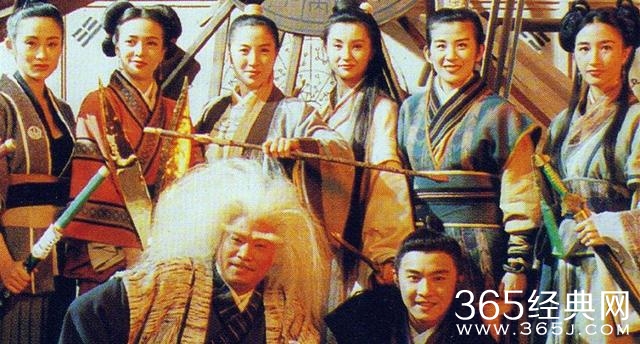 《武侠七公主》一群美女(从左到右张敏、郑裕玲、杨紫琼、张曼玉、吴君如、关咏荷)+两个逗比(吴孟达、张卫健)。