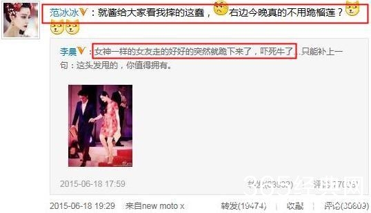 之后还不失幽默的发微博表示“吓坏牛”了,遭范爷转发表示要“动用家法”了,满屏的狗粮溢出来。