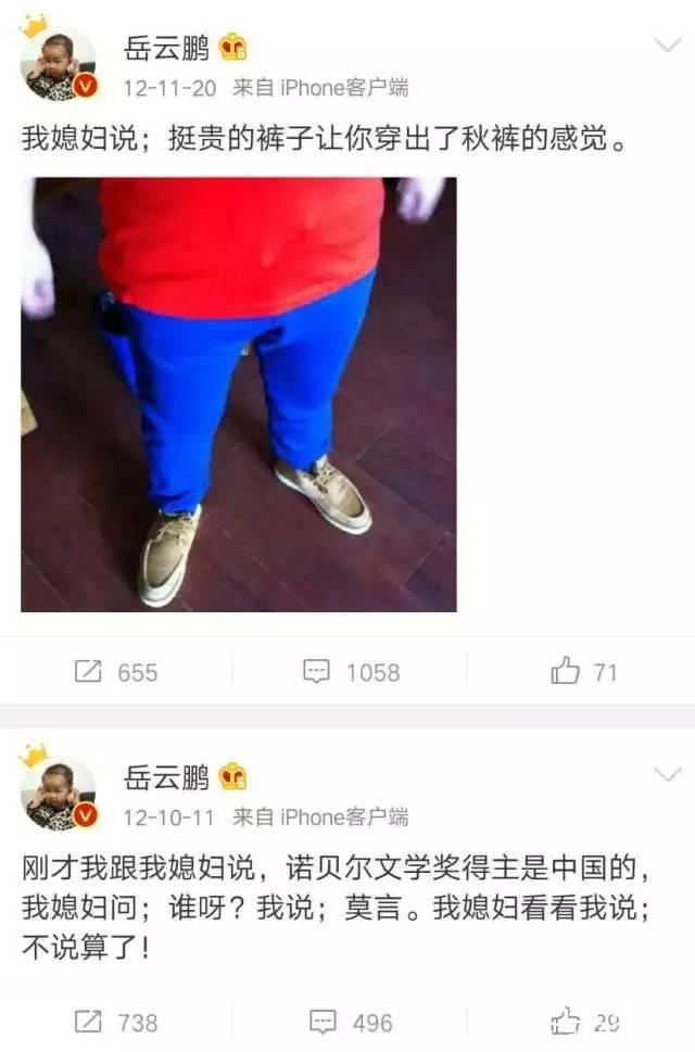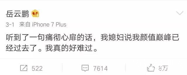 三句话不离自己的媳妇,微博满满的生活日常,岳云鹏即使已经是明星了但是“人间烟火气”一直没丢。
