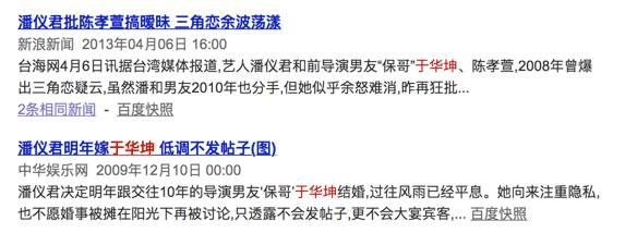 而说起潘仪君的感情,之前和台湾导演于化坤恋爱十年,最后被传以陈孝萱插足而收场。