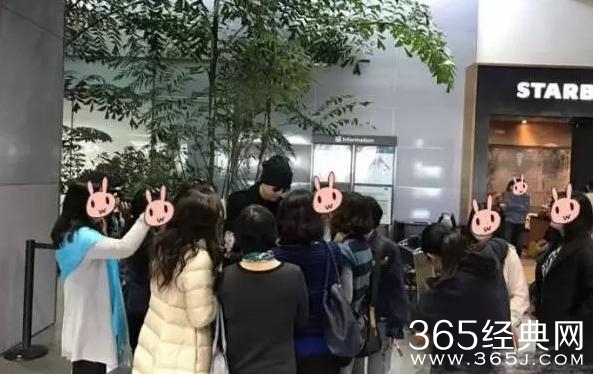 ▲胡歌头戴线帽,黑超遮面,与前来接机的粉丝们签名合影。