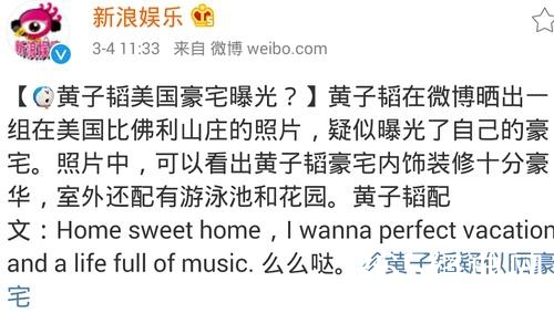 但是黄子韬的微博却说的是,home sweet home呢!