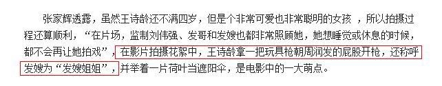 话说王诗龄这个事小编还真是第一次听说,翻看此前的报道看,目前仅仅在之前一则《澳门风云2》拍摄花絮报道中写了王诗龄称呼发嫂为“发嫂姐姐”的消息。