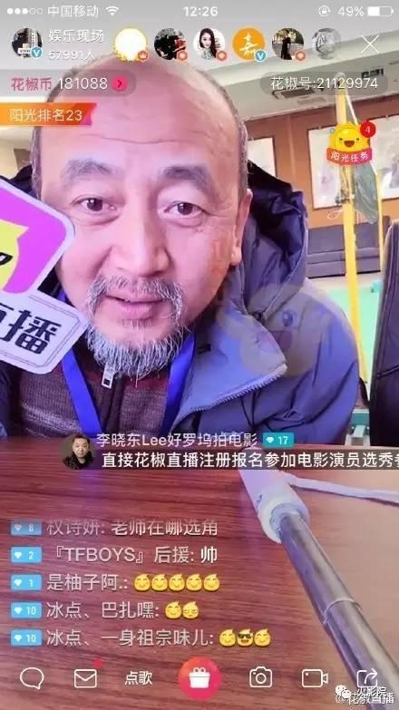 不仅如此,王老师还为热爱表演的素人们提供了施展才华的平台,通过和花椒直播的合作,将海选出热爱表演的新人参演该片,为影片增添亮点!这部电影将于今年四月投入紧张的拍摄,期待王劲松导演的首部电影作品!