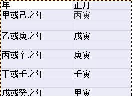 干支纪月法未普遍实行,主要为星相家推算八字用。其方法为:若遇甲或己的年份,正月是丙寅;遇上乙或庚之年,正月为戊寅;丙或辛之年正月为庚寅,丁或壬之年正为为壬寅,戊或癸之年正月为甲寅。正月之干支知道了,其余月可按六十甲子的序推知。