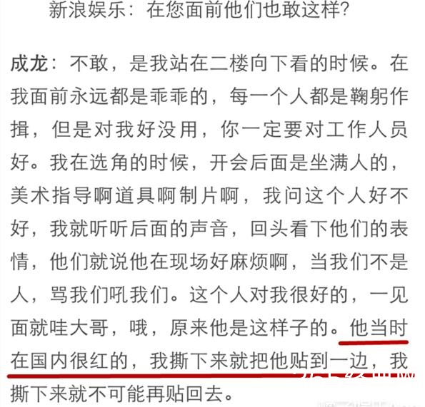 有些人在大哥面前是一副面孔,转过身又是一个样子,对工作人员一点都不好,这样的人,大哥会狠狠的把他撕下来,即使很红也不会要这样的人演角色。即使他和大哥合作过,曾经在国内很红,保镖有7.8个。只可惜他不敬业。