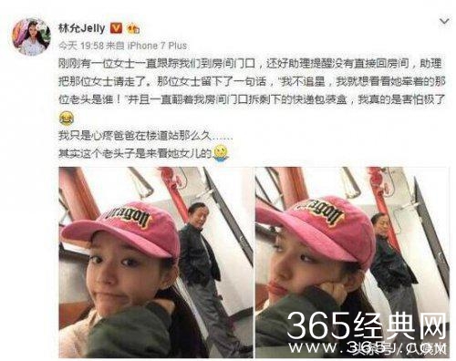 小“星女郎”林允走红后,也遭遇过一件可怕的事。某天夜里,林允被人跟踪到房门口,之后在微博发文:真的是害怕极了。那人还翻了她门口的快递,不过幸好被助理及时发现,不然谁也不知道会发生什么事情~