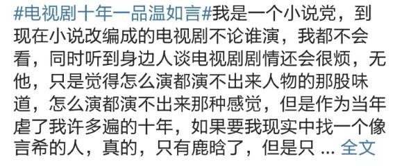 这本小说,很难去拍成电视剧,不说剧情合不合适,人物的挑选就是一个大问题。据说,这部小说要拍成电视剧的时候,原著粉纷纷抗议,表示无人能够胜任言希和温衡这两个角色。