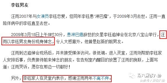 但是聊着聊着,李钰就把汪雨给撬走了。。。。后来李钰患上癌症,09年就去世惹。。。汪一直陪着她到生命结束
