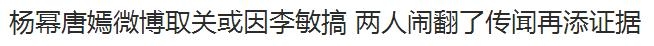 眼尖的网友发现以后开始大肆宣称唐嫣和杨幂关系不和,虽然唐嫣工作室立即删除了微博并称被盗号,但这不足以说服网友。
