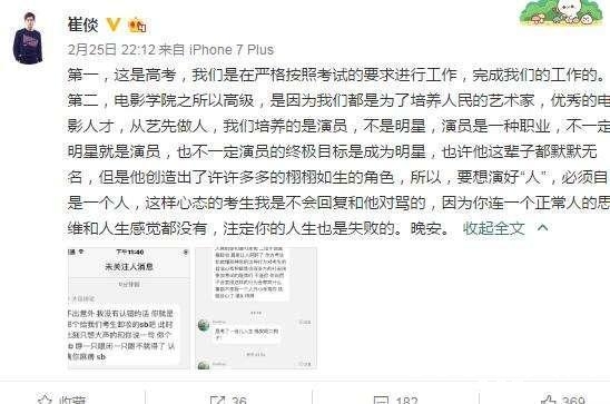 回顾今年的艺考,除了上述的两位明星备受关注外,前两天还有一位艺考老师崔倓因为给学生卸妆被骂引发争议。昨天王劲松对此事作出回应,但并没有多说什么,只是表示考生这样的言行不太好。