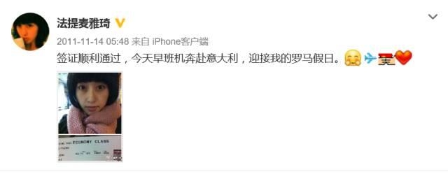 【两人同游意大利 法提麦雅琦微博“求婚”】