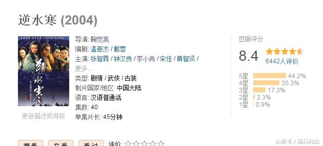 60集,现在的电视也是越来越夸张了,当年的逆水寒也才30集,想想良心也就值差不得12年时光了。