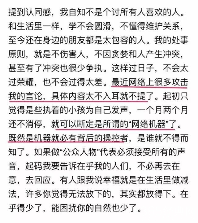 非议太多,她也不得不出来回应,她认为黑子不消停,基本可以确定是“网络机器”,背后有人在操纵。