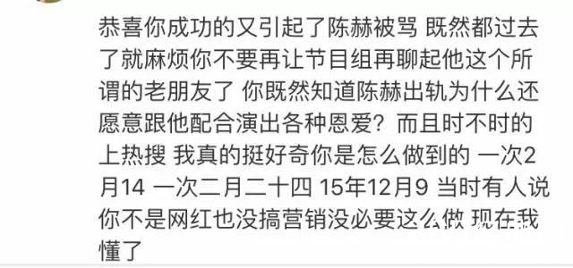 对她不满的人表示:她频繁上热搜,吐槽她买热搜、消费陈赫