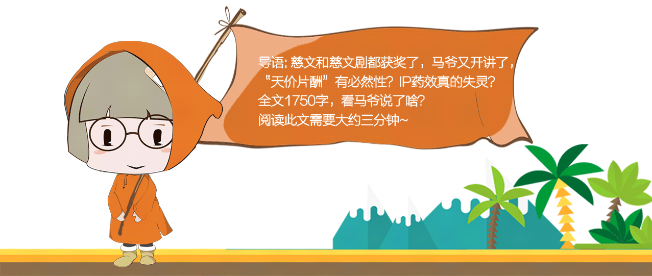 马爷还指出,不是所有的网文都有IP改编价值,“相当多的伟大文学作品都不适合影视改编,或是不太好改。大IP改编出来完全扑街的有很多,这就取决于改编者的能力和心态,IP的转化的确是重要的一环。”
