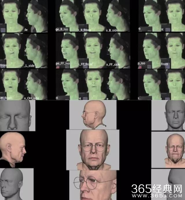 ▲特效团队首先要做的就是记录下皮特的上百种表情,再进行3D建模处理,产生适合电影人物的表情模具