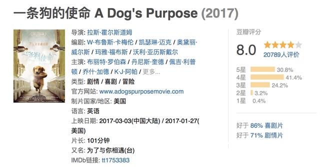 而《一条狗的使命》国内外的评价却是两极分化。
