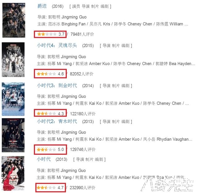 相反的,郭敬明执导的电影一直以来评价都不好,豆瓣评分也从没高于5分▼