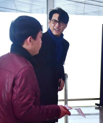私下的靳东很文艺,这黑色眼镜也是很有气质,亲切自然。