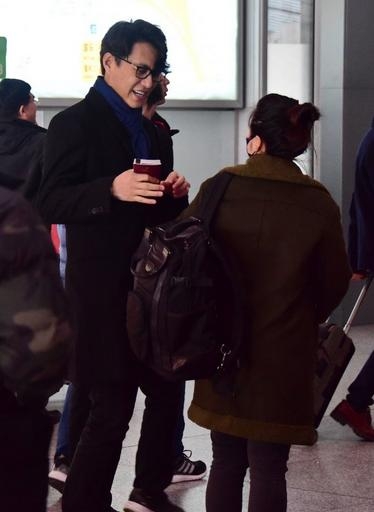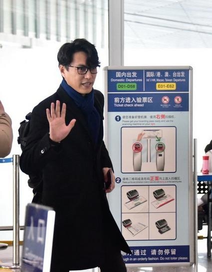 靳东现身机场,一身黑色大衣配蓝色围巾很是帅气。