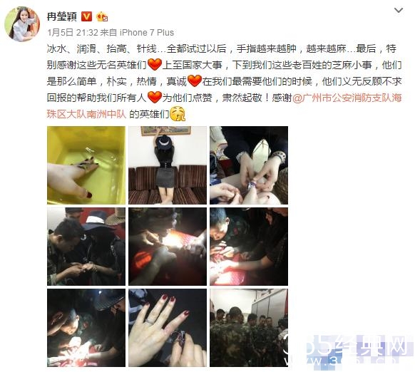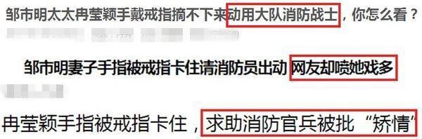 因为手指关节太粗,导致钻戒戴的上去但是拿不下来~她为了表示对消防员的感谢,还特地发了个微博表示谢意~