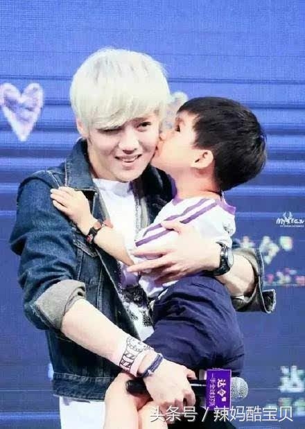 鹿晗抱娃就像一个哥哥抱弟弟的样子,小鹿一副害羞的小表情。
