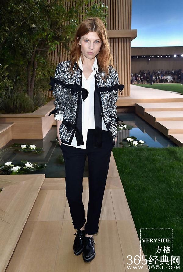 2016年1月,克蕾曼丝·波西在香奈儿高定秀场,穿男友款白色衬衫搭配黑色锥形裤、德比鞋和香奈儿夹克描写春天的句子