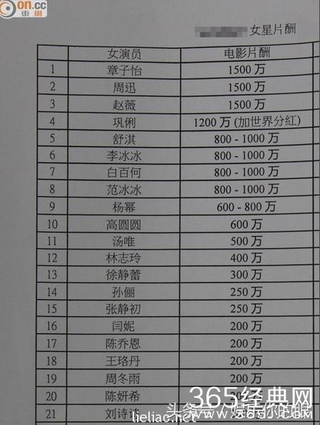第一名:章子怡(电影1500万)