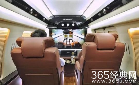 它的内饰是让人惊叹!它和劳斯莱斯走的是两种不同的风格,劳斯莱斯是汽车品牌,而GMC商务之星完全是个装潢公司。车内富丽堂皇,家庭影院式高级BOSE音响、42寸超薄液晶电视、大容量冷暖箱、 360度旋转电动航空按摩座椅,以及第三排可以放倒的座椅,能够瞬间变出一张柔软的大床。就像拥有一座移动的小别墅!