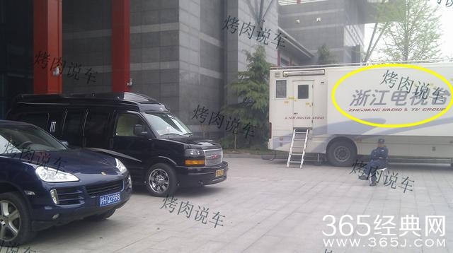 除了坐劳斯莱斯去上班,周立波有时还会坐一辆黑色的大房车去上班。与往常一样,电视台门口就是他“专用”的停车位,直接停在大门口,这是大腕才有的“特权”。旁边的保时捷是保镖的专车,用来在房车前面“开道”护卫,司机们将车头调整好,等待着周立波下楼。