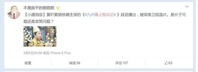 近日,坊间开始流传原定暑期档登陆湖南卫视的玄幻大剧《海上牧云记》被湖南卫视退片的消息。这部云集了黄轩、窦骁、周一围、徐璐、文咏珊、张佳宁等实力派和偶像派主演的年度大作,从开拍之初就备受关注,而且之前曝光的预告片也被很多从业者认为是可以成为年度玄幻的超级大剧。