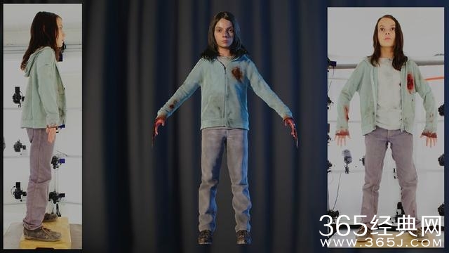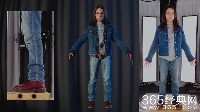 下面是两张X23的幕后对比照,中间是最终渲染的全身CG模型,其他则是3D扫描与收集素材时的照片。