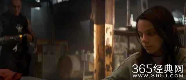 X-23劳拉第一次大展身手是在仓库旁,在此前的预告中,镜头在给到她与一名雇佣兵之后,用枪声与尖叫做场面调度。接下来就是劳拉抱着一个血肉模糊的人头出现在仓库外。内地版正片中,劳拉从仓库中出来时,手中的人头换成了包。