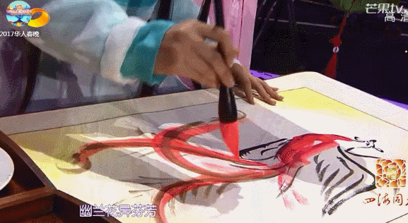 张馨予在圈内会画画算得上是小有名气的,现场作画自然也难不倒她,看看这大笔一挥气定神闲的模样,一副画作也价值8W呢