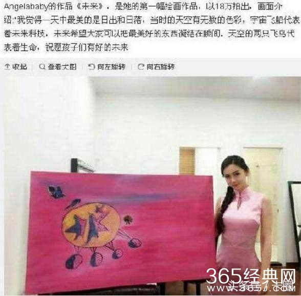 圈内的拍卖会上,baby的画作成为了焦点,杨颖的画作名为《未来》,据悉这是baby的处女座,价值18W,真的是让卡圈惊呆了,到底是怎样的一副名家画作呢