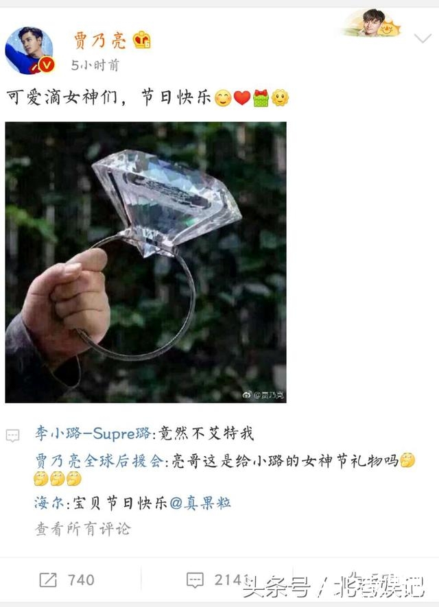 贾乃亮这个大“土豪”,送祝福的同时,也不忘搜上一张土豪图,请问这个钻戒几斤?仔细看,下面李小璐的高仿号也是醉了