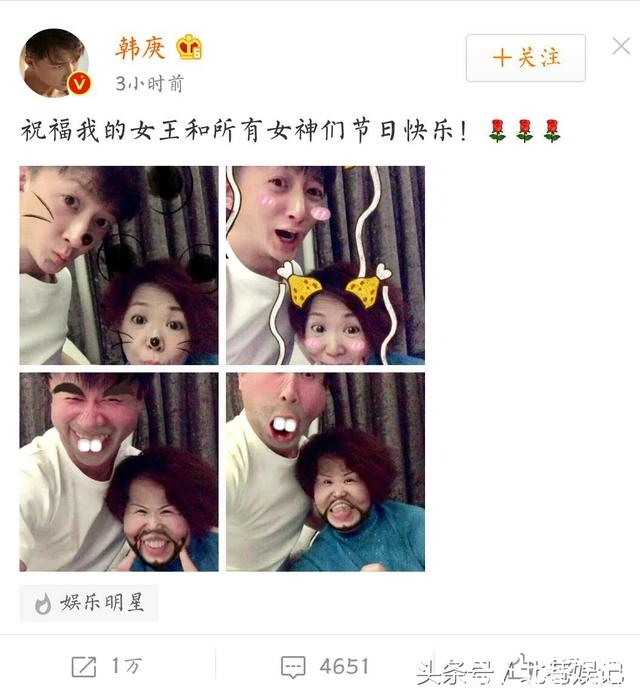 韩庚和妈妈的搞怪自拍,逗乐了不少粉丝吧,妈妈也很配合,很可爱哟