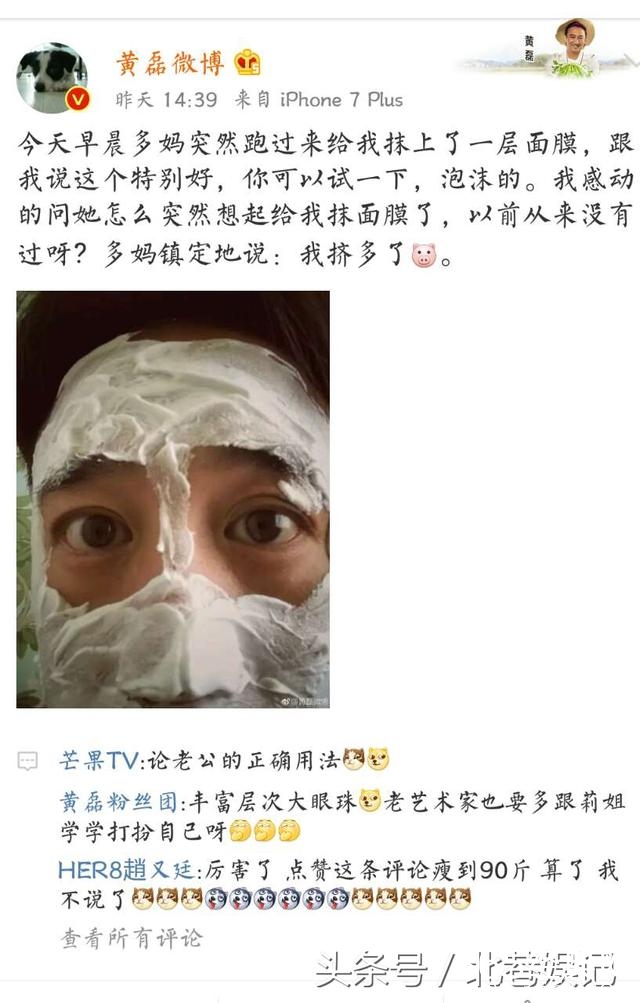 黄磊的就相对来说比较简单些,简单的祝福,而且今天也是他们的结婚纪念日哟,昨早,黄磊在微博说:多妈突然给他涂面膜,原本还沉在幸福中,多妈却说:是自己挤多了。哈哈,这就是论老公的正确用法