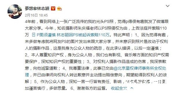 上个月因为一张PS照,林志颖不但在微博上公开做出道歉还被索赔110万的事,大家都知道吧。
