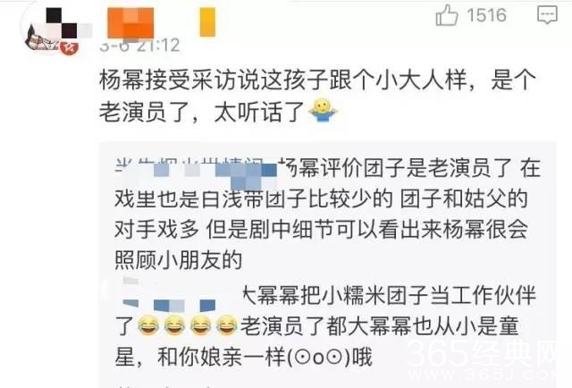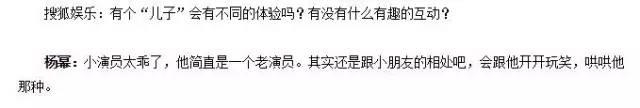 “杨幂接受采访时,说这个小孩子跟个小大人样,是个老演员了,太听话了。”