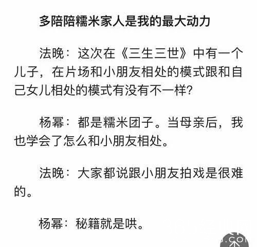 有人挖出来杨幂做宣传时的采访,说当妈之后她都学会了如何和小朋友相处,秘籍就是哄: