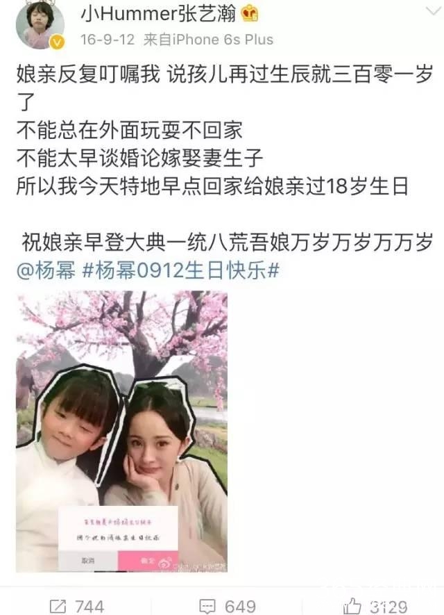 去年,杨幂生日时,张艺瀚连微博头像都换成杨幂: