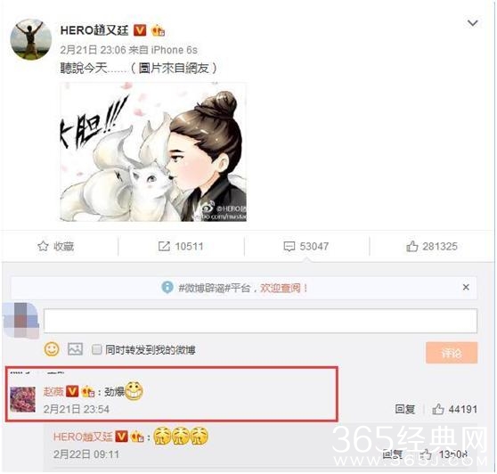 哈哈。。。依萍,难道你忘了跟书桓在火车站台上的那段尴尬又劲爆的吻戏了吗?现在居然还来调侃人家赵又廷,真的好吗?2月21日晚赵又延发微博配了一张卡通图,图片是夜华君亲吻九尾狐,看过正片的都知道,是夜华在西海水君的宫殿壁咚加强吻白浅呢。